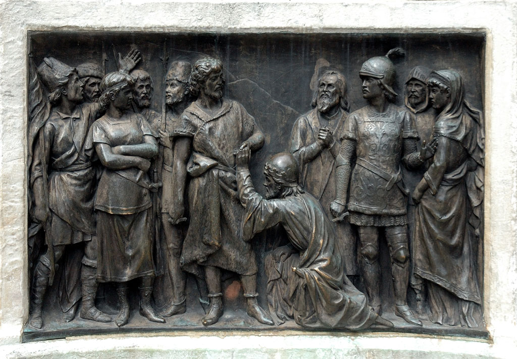 El propietario de la estuatua fue el Ministerio del Estado, que se la regaló a la noble Villa de Madrid, pero sin el pedestal, que el Ayuntamiento encargó al mismo escultor y cuyos costes se elevaron a 34.500 pesetas de entonces.