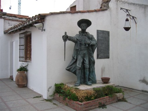 Esculpida su imagen en una sola pieza de bronce, representa al alcalde ataviado con amplia capa y cubierto de sombrero chambergo, portando la vara de mando en su mano derecha. Se representan, asimismo en bronce, el escudo de España, y el águila imperial, representante del dominio napoleónico, que vuela arrebatando la corona de la soberanía española. Adosado a la roca, se observa el relieve que representa al postillón que portaba la proclama de declaración de guerra al francés. Todo el conjunto escultórico se encuentra asentado sobre un gran pedestal de sillares bien trabajados y un monolito de piedra serrana granítica procedente de la provincia de Segovia que representa los Pirineos, que violentaron los franceses para la invasión y ocupación de nuestra patria. También se inauguró una lápida conmemorativa en la modesta casa del célebre alcalde, que hoy se conserva impecablemente como ejemplo de casa de labradores tradicional mostoleña de las que ha desaparecido casi cualquier rastro.