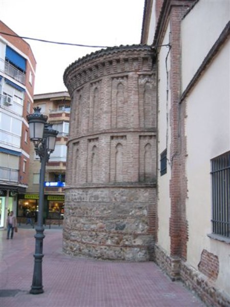 d) Una sorpresa mudéjar: Para el visitante no avisado que llega por primera vez a Móstoles sin referencias previas de su dilatada historia, y aleccionado por el aspecto inequívocamente contemporáneo del urbanismo y de la arquitectura residencial predominante en el casco histórico, la contemplación de su iglesia parroquial tradicional, no desmentirá inicialmente la impresión que haya anidado en su ánimo de hallarse en una ciudad moderna desarraigada de cualquier tradición histórica. No obstante, la visión de su esbelto campanario, le pondrá inmediatamente en alerta. Ya avisado, si se decide a rodear la totalidad del edificio, descubrirá otro elemento que le confirmará la sospecha de que el templo oculta mucho más de lo que refleja su actual aspecto anodino.