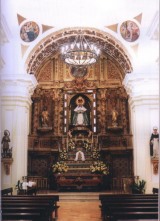 Es un templo de una única nave, en planta de cruz latina, dividida en tres tramos y cubierta con bóveda de cañón. Destaca la decoración de la capilla mayor, similar a la del Cristo de los Dolores de la Iglesia de San Francisco el Grande de Madrid.