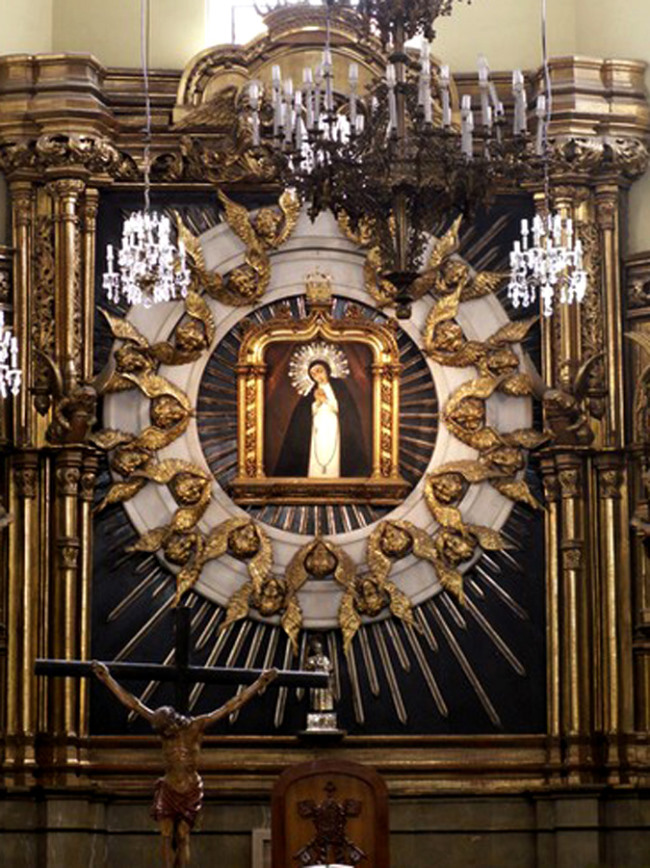 El cuadro de la Virgen de la Paloma (Nuestra Señora de la Soledad), puede verse en el altar mayor.