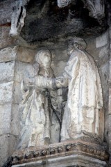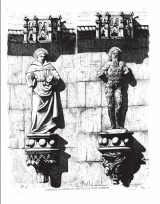 Debajo de éstas, los escudos de armas de los fundadores. Las figuras llevan doseles muy dañados.