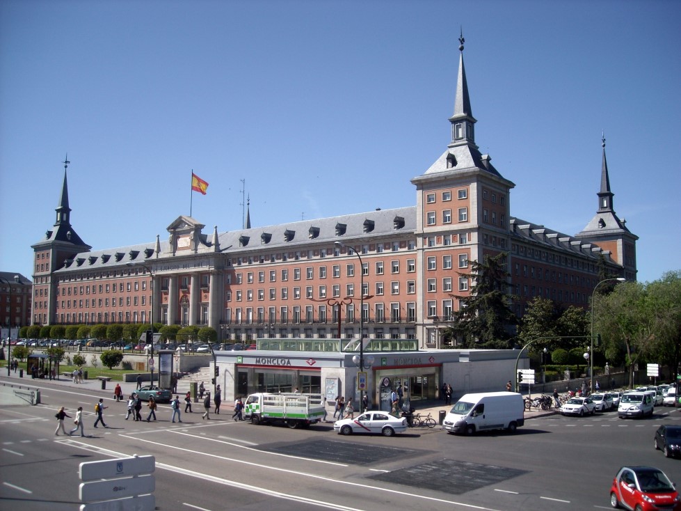 Pero no estamos de compras, así que seguiremos calle arriba dirección a Moncloa. Según nos acercamos, lo primero que veremos será el Faro de Moncloa, aunque cuando ya estemos casi “tocándolo” nos sorprenderá la presencia del Cuartel General del Aire, un soberbio edificio construido en los años 40 del siglo pasado sobre los terrenos que ocupaba la antigua Cárcel Modelo y cuyo diseño tomó como ejemplo el Monasterio de San Lorenzo de El Escorial. Tanto que hasta los datos resultan también abrumadores: casi 154 metros de largo y 90 de ancho, más de 1.200 ventanas, cuatro torres rematadas por sendos chapiteles de estilo filipense en sus cuatro esquinas…