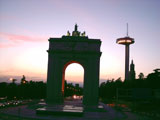 Junto al mismo se levantó el Arco del Triunfo, un monumento levantado hacia mediados de los años 50 del siglo XX y que al atardecer adquiere su verdadera belleza cuando es iluminado tanto por las luces de los numerosos focos que la enmarcan, como por el cielo anaranjado tras el que el sol se oculta un nuevo día.