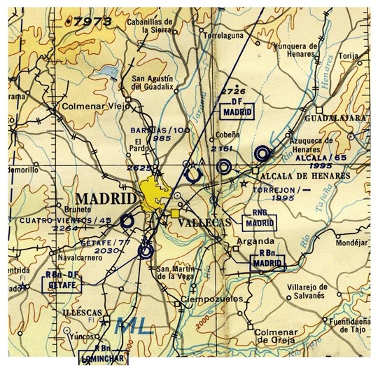 - L (.-..) en 335 Khz, en el aeródromo de Getafe. La “L” es por “Locator” o baliza localizadora.