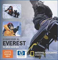 National Geographic y HP convocan la primera edición del concurso Everest de fotografía digital. El evento conmemora el 50 aniversario de la subida al Everest. Con importantes premios como un viaje para dos persoanas a "la cima del mundo" o unas cámaras digitales de HP. Si se está interesado en participar, hay que enviar las fotografías a concurso_everest@hp-ngc.com antes del 1 de junio. |