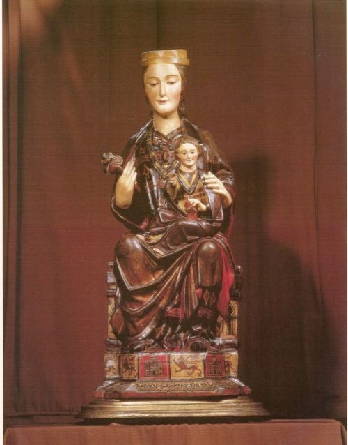 Esta imagen, de transición del estilo románico al gótico, suele fecharse hacia finales del siglo XIV, aunque generalmente se ha atribuido a una donación más del Rey Santo Fernando III, ya que tomó Monasterio bajo su protección en el año 1228, favoreciéndole extraordinariamente con privilegios y donaciones, como la que efectuó en 1231 de la conocida como "Huerto de la Reina o de la Priora", que estaba ubicada en parte de la actual Plaza de Oriente, restando en el callejero de Madrid la conocida como Calle de la Priora, breve callejón que sirve de unión entre la Costanilla de los Ángeles y la Calle de los Caños del Peral. El Rey Fernando III falleció en Sevilla en 1252 y, por su concepción estilística, esta imagen parece al menos siglo y medio posterior a la fecha antedicha. Aunque no hay que descartar el hecho de que efectivamente la imagen hubiera sido donación de este monarca, dadas las restauraciones y repintes que sufrió a lo largo de la historia, y a su semejanza con imágenes contemporáneas a la época del Rey Santo. Sin embargo, el hecho de que la peana del trono esté ornada con los símbolos heráldicos de Castilla y León quizá pueda deberse a donación efectuada por la infanta de Castilla Dª Constanza, que fue priora del convento de Sto. Domingo el Real aproximadamente desde 1417 hasta 1462, falleciendo en 1478. Consta documentalmente que mandó traer el cuerpo de su abuelo, el célebre D. Pedro I el Cruel, muerto traicioneramente a manos de su hermano D. Enrique de Trastámara en Montiel en 1369, al que hizo trasladar y enterrar en la capilla mayor del templo de Santo Domingo, encargándole en 1448 un hermoso túmulo con su estatua orante el cual, gracias a Dios, se conserva actualmente el Museo Arqueológico Nacional, junto con la sepultura y la imagen yacente de Dª Constanza.