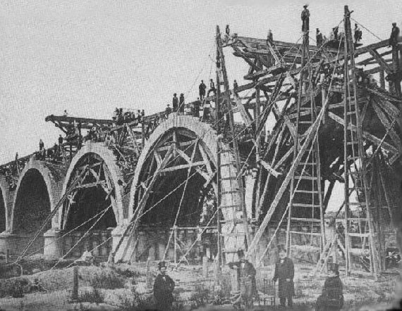 Como he mencionado con anterioridad, las obras comenzaron en 1859, al principio se realizó un embarcadero y un puente para salvar el río por su paso por Aravaca y Pozuelo. Como el proyecto fue acometido por ingenieros galos al puente se le conoce como el Puente de los Franceses.