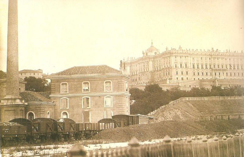 En el año 1852 a píe de la Montaña comenzaron unas obras para conducir hasta la zona las aguas de la Fuente de la Reina, en el Pardo. Estas obras pretendían aumentar el abastecimiento de aguas a la capital, insuficiente por el aumento demográfico y por el deterioro del anterior sistema (Viajes de Agua) hasta que prosperara el proyecto de traídas de aguas del Lozoya. Desde la zona baja de la Montaña se subía el agua proveniente de la Fuente de la Reina, mediante el empleo de dos máquinas de vapor, distribuyéndose por el resto de la ciudad. Debido a la insistencia del alcalde madrileño Ferraz en el año 1855 comenzaban a funcionar varias fuentes de hierro distribuidas en distintas plazas (San Marcial, Celenque, La Encarnación, etc.).