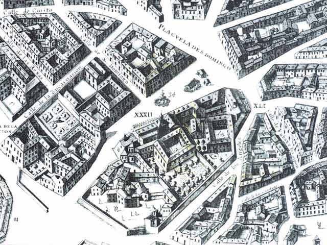 Esta casa formaba parte de una gran manzana que estaba frente a ala manzana ocupada en su totalidad por el convento de las Descalzas que en su tapia trasera daría a la actual calle Preciados que se une con la del Postigo de San Martín cerrando la manzana por el oeste. Por el este cierra la manzana la plaza de Celenque y la calle del maestro Tomás Luis de Vitoria que lleva igualmente a la calle Preciados.