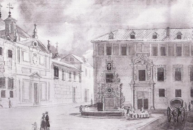 En esta misma manzana, orientada a la plaza de Celenque que ya aparece con este nombre en el plano de Texeira de mediados del siglo XVII, estaba la casa que era propiedad de los duques de Nájera y Maqueda y luego también condes de Arcos que eran sus vecinos con su casa en esta misma manzana mirando a la parroquia de San Ginés. Fue comprada la casa que ocuparan los duques de Nájera a Juan de Córdoba y Celenque, alcalde de El Pardo, a fines del siglo XV. Es el alcalde de El Pardo el que da nombre a la plaza de Celenque donde están ahora los Grandes Almacenes de El Corte Inglés.