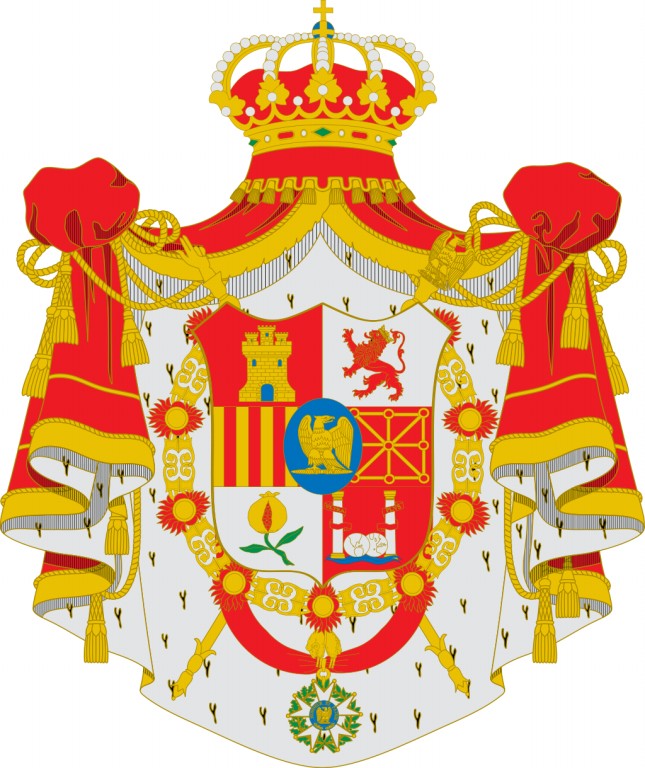 Las únicas condecoraciones que fueran notorias entre la multitud resplandeciente que nos rodeaba, eran, con la estrella de la Légion d’honneur y la Corona de hierro, las Órdenes Reales de Nápoles y de España, las dos creadas por José. La Cruz de Nápoles, rematada por un águila de oro con las alas extendidas, se llevaba suspendida a un lazo azul cielo. La Cruz de España, sencilla estrella de cinco puntas esmaltada con rubíes, se ataba a un lazo rojo; era una especie de legión de honor española [7].