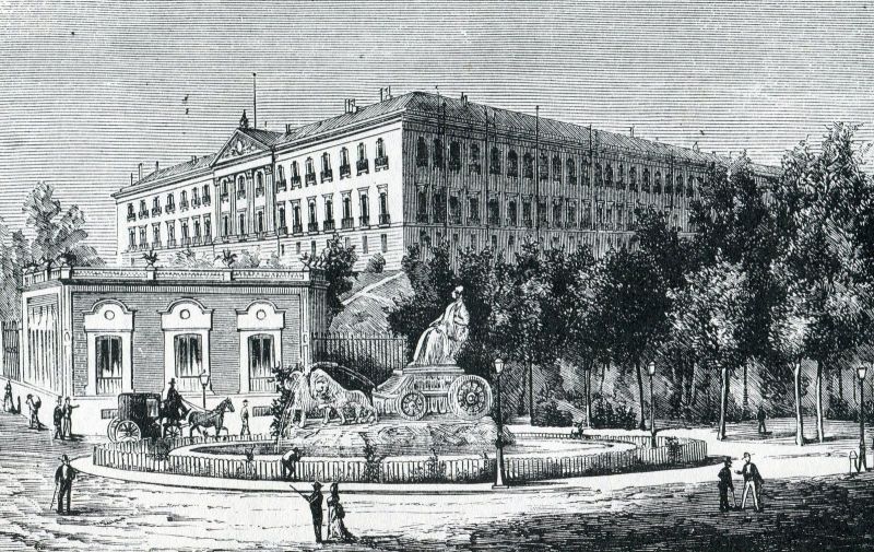Hasta entonces la fuente no estaba en medio del cruce, sino que ocupaba la esquina noroccidental, es decir, la más próxima al entonces Ministerio de la Guerra, hoy Cuartel General del Ejército.