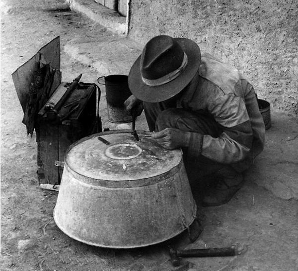 Otro oficio que recuerdo ligado a mi niñez es el de los paragüeros-lañadores, dedicados a la reparación de paraguas y cacerolas. Hay que aclarar que en esos años resultaba más económico arreglar cualquier utensilio o aparato que comprar uno nuevo. Los paragüeros-lañadores trabajaban a domicilio - frecuentemente en los patios de vecindad -, y recorrían las calles portando sus herramientas - entre ellas un rollo de hojalata y un hornillo - y pregonando su oficio: “Paaaaragüeroooo lañadoooor”. De los paraguas arreglaban sus cierres o cambiaban las varillas; de las cacerolas tapaban los agujeros que con el uso se producían, porque aquellas cacerolas eran de aluminio o chapa esmaltada y el fuego las acababa dañando. Para su reparación primero se lijaba la superficie a arreglar y luego con estaño se sellaba, limando a continuación la soldadura. Con el paso del tiempo solía derretirse el estaño, presentándose de nuevo el agujero, o se producían otros nuevos.