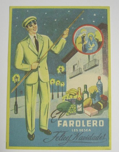 Al amanecer y al anochecer ejercían su oficio los faroleros. La tecnología de por aquel entonces no permitía el encendido y apagado automático de las farolas y tal función tenía que ser desempeñada manualmente. Los faroleros se valían de unas pértigas, que tenían en un extremo un gancho que servía para dar al interruptor que encendía las bombillas.