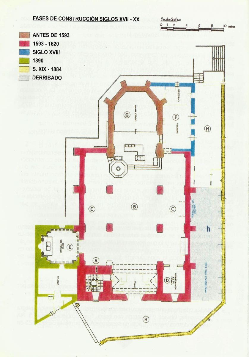 Atendida la petición, el Cabildo remitió a los maestros de obras Diego Sillero y Luis Luzón, los cuales elevaron informe del estado del templo a dicho organismo y redactaron el proyecto de construcción del nuevo templo. El plan preveía la demolición del pequeño cuerpo del templo, ante la dificultad de ampliarlo, dado el mal estado de la fábrica y la armadura de las cubierta, y la edificación de un amplio templo de tres naves aprovechando la gran capilla mayor, edificada a fines del siglo XV, o comienzos del XVI que sería remodelada siguiendo los cánones del manierismo arquitectónico renacentista. Aprobado dicho proyecto, las obras se iniciarían en el año 1593, concluyéndose en sus líneas generales en el año 1620 (foto 11)