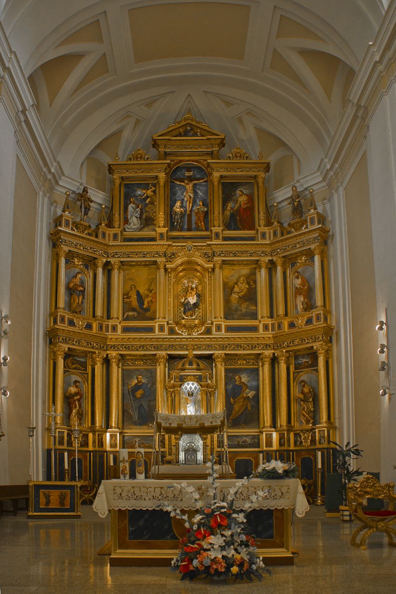 Entre los elementos que contribuyen a la brillantez y hermosura que trasluce este templo hoy en día, destaca su hermoso retablo mayor que podemos contemplar en la Capilla Mayor. Como dijimos anteriormente, el antiguo, datado aproximadamente en 1608 y realizado por el entallador Alonso López, y los pintores Andrés Cerezo y Blas Gutiérrez, fue destruido en 1936, junto con otros menores, pero no menos artísticos situados en las naves y capillas laterales. El flamante retablo mayor que hoy podemos contemplar es fruto de las gestiones y esfuerzos de las anteriores entidades que formaron una Comisión-Pro retablo, y se encargó su elaboración al taller de D. José Antonio Martínez, de la localidad caracense de Horche. Instalado en dos fases, entre 1997 y 1998 fue finalmente bendecido por el Arzobispo de Madrid, Cardenal D. Antonio María Rouco Varela en el año 2000, con asistencia del entonces alcalde del Madrid, Sr. Álvarez del Manzano y de otras autoridades autonómicas y municipales.