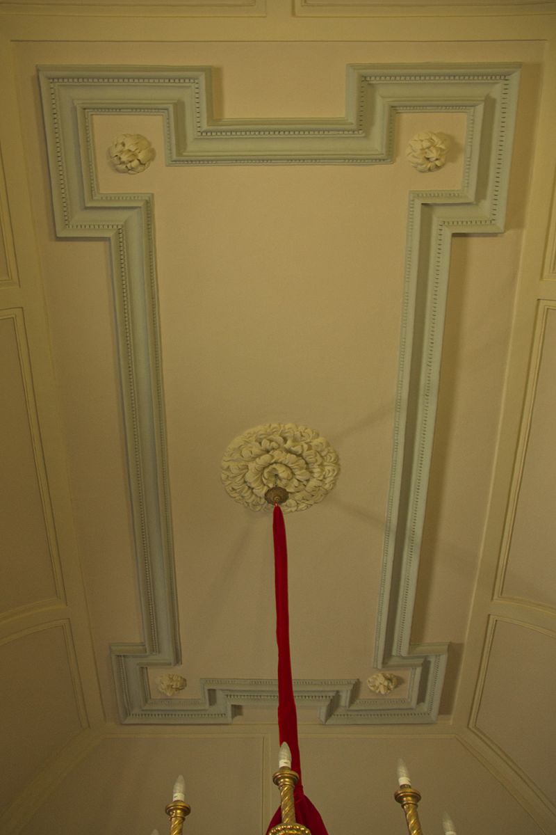 El último elemento de interés que queremos resaltar del conjunto del templo, es la Sacristía de la parroquia. Edificada posiblemente en el siglo XVIII, junto a la cabecera sur del templo, se encuentra edificado en los mismos materiales que el resto de la iglesia, es decir, mampostería y ladrillo. El elemento arquitectónico más reseñable de su interior es su magnífica bóveda rectangular en forma de artesa (foto 22). Mostrando segmentos agallonados en su zona curva, la parte plana superior muestra una doble molduras con esquinas orejeras características del barroco madrileño y ocupadas por pequeños florones circulares, dejando en su centro una decoración vegetalizada en anillos concéntricos, también circular de mucho mayor tamaño. La delicada tonalidad cromática que muestra esta hermosa bóveda es fruto de la restauración a que fue sometida la sacristía en 1994 tras un incendio vandálico sufrido el año anterior.