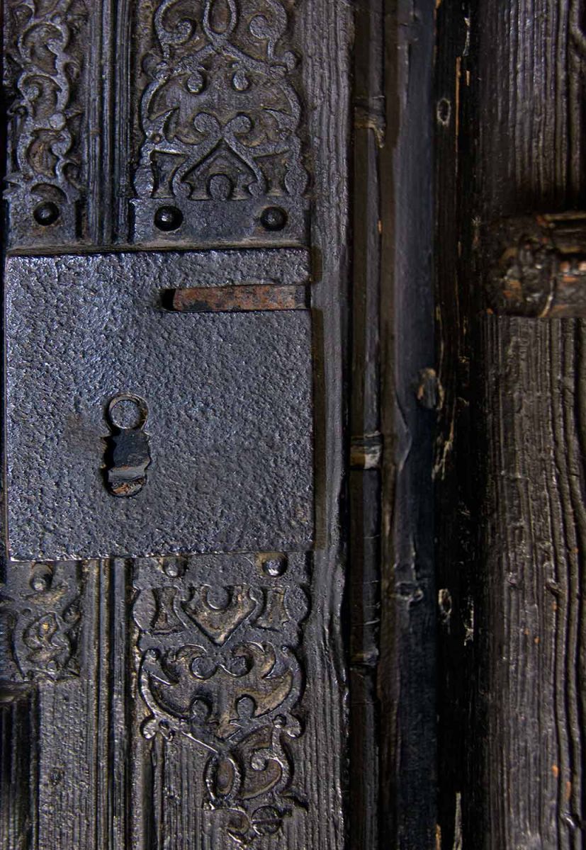 La portada de madera está datada en el año 1640 (foto 14) y exteriormente fue forrada de hierro en el siglo XIX.
