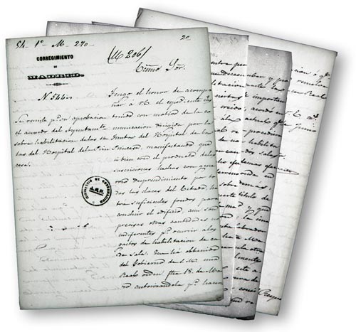 Según se recoge en el contrato manuscrito, de fecha 15 de enero de 1857, por Real Orden se designa a las Hermanas de la Caridad para el cuidado de los enfermos, entre otras atribuciones. En el cual, en un total de 25 artículos se van dando las pautas de actuación, así como las obligaciones y derechos de las Hermanas de la Caridad.
