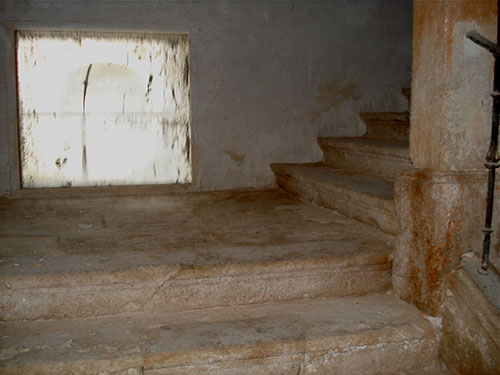 A pesar de lo reducido de su tamaño, el esquema es complejo. La triple fachada de la iglesia da paso a espacios diferentes. Las laterales a las escaleras de las tribunas, dejando a la central como única entrada al octógono.