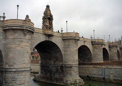 A pesar de lo monumental de sus dimensiones, consiguió mediante el diseño de los grandes cuerpos curvos que se levantan sobre los tajamares, y que se proyectan sobre la calzada en acogedores espacios, que perdiera la frialdad de una obra de ingeniería. El centro del puente quedaba marcado por los templetes que acogen las estatuas de San Isidro y Santa María de la Cabeza que haría el escultor Juan Ron, y que son de lo poco que han sobrevivido de este estilo.