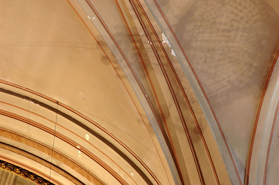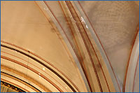 Esta impresión “híbrida” de la planta, se acentúa al comprobar que las pilastras que delimitan las capillas a la única nave del templo se encuentran dispuestas de manera oblicua a la misma (Fig. 3), con lo que el arquitecto consigue aportar un movimiento y dinamismo arquitectónico que nos remite inmediatamente al genio del barroco que fue su autor, Pedro de Ribera (1681-1742). Esta disposición de las pilastras es heredera directa de la innovación creada en su día por el gran modenés Guarino Guarini (1624-1683). La bóveda de esta nave refleja esta original disposición de las pilastras, al no desarrollarse en forma de cañón, tan habitual en nuestro barroco, sino en forma de arista, reforzada por grandes arcos fajones de crucería. Esta peculiar disposición nos recuerda a la planteada por el piacentino Giacomo (“Santiago” en España) Bonavía (1700-1760) en la también iglesia madrileña de San Miguel (antigua iglesia parroquial de los Santos Niños Justo y Pastor).