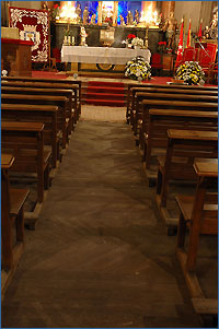 Como ya advertimos, es posible que varias de las imágenes descritas en el interior del templo no ocupen el emplazamiento en que las sitúa este artículo. La instalación del Misterio y del Nacimiento, en el momento de efectuar la visita, motivó el desplazamiento de varias tallas de su ubicación original.