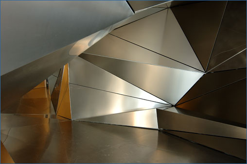 Este proyecto de Plasma Studio te sumerje en un mundo que se me asemeja al interior de una nave Cylon y es muy fácil imaginar que aparecerá un robot metálico al doblar cualquier esquina. Eso si hubiera esquinas. Porque el diseño que ha planteado aquí Plasma Studio rebosa de poliedros arriesgados en acero inoxidable, en un intento de huir de los estereotipos que le corresponden a un hotel. Yo creo que sin duda, lo han conseguido.