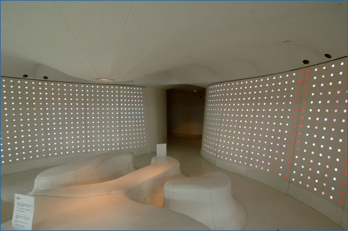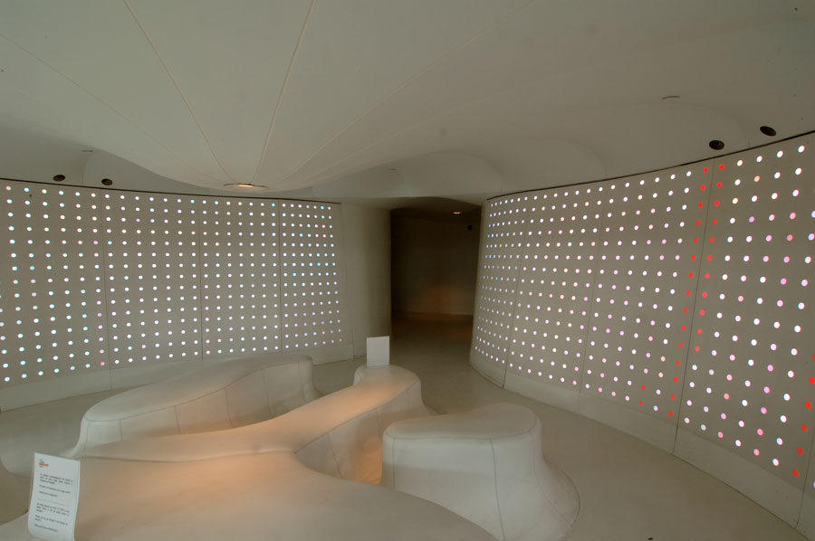 Esta arquitecto escocesa intenta siempre integrar tecnología y arquitectura. En este caso se nota también la colaboración del diseñador de iluminación Jason Bruges.