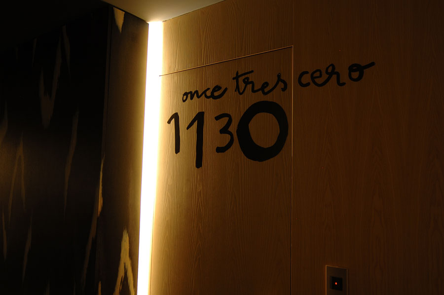Al entrar al distribuidor de la planta se puede observar una escultura de un cactus simplificado al estilo de la iconografía propia de Mariscal. Hecha en corian de colores y con una base de acero inoxidable. En el lobby, la alfombra es anaranjada, mientras que en los pasillos es de un tono verdoso, mezcla que aporta un equilibrio cromático, creando un espacio cálido y confortable. Las paredes están revestidas de formica cebrano. Y los números de las habitaciones son irregulares, siguiendo la caligrafía diseñada por Mariscal.