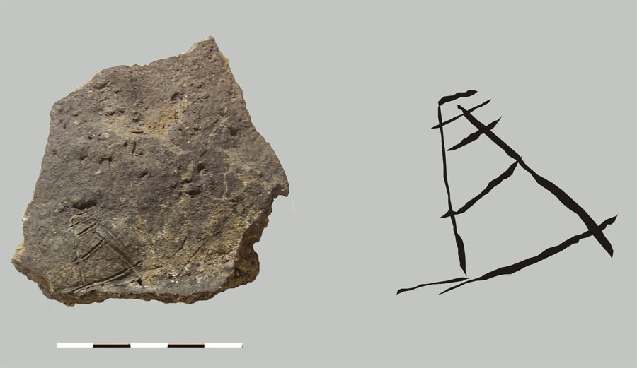 En cuanto a la cronología de la pieza, la paleografía nos remite a los siglos X y IV a.n.e, unido a los datos de C14. No es extraña la presencia de un agente comercial en una zona de transformación y producción, en el sentido de que la persona que utilizó esta pieza en su quehacer cotidiano tendría conocimientos de escritura y probablemente estas nociones le serían útiles en contabilidad e informes.